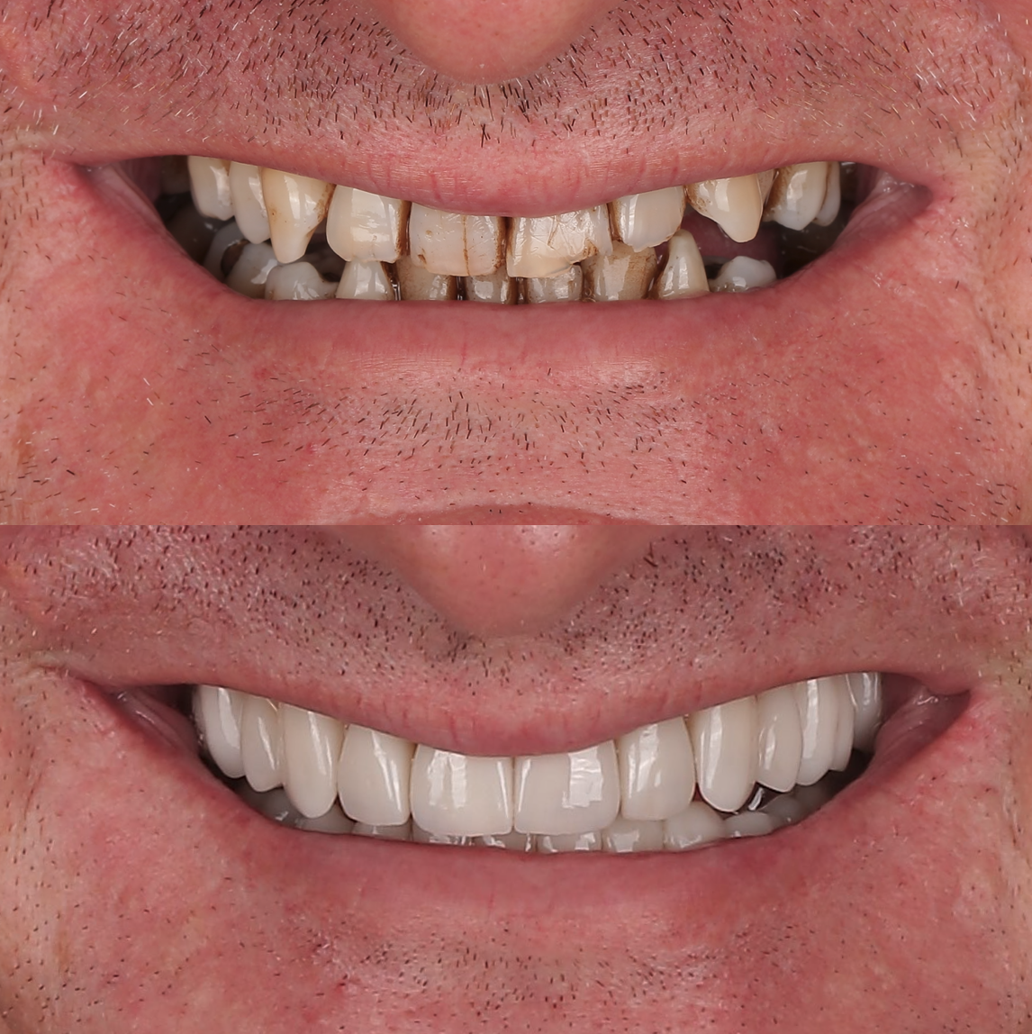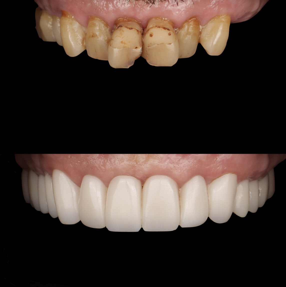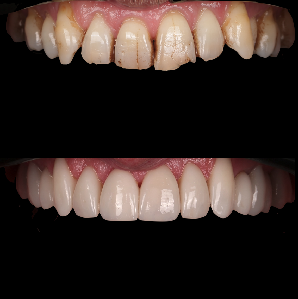 Porcelain veneers, full zirconium crowns